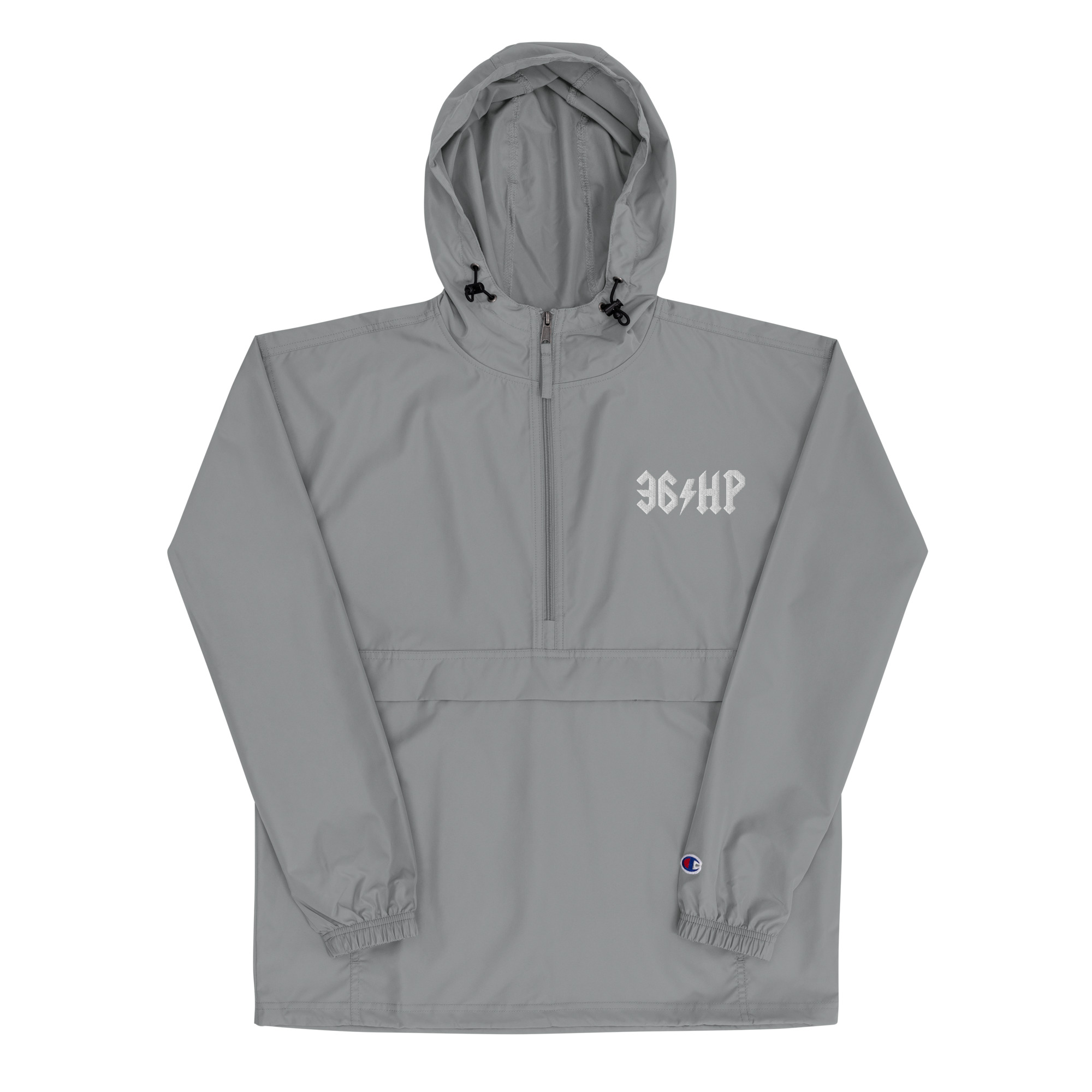 Protect yourself from the elements with this Champion packable jacket. This wind and rain resistant polyester jacket with a detailed embroidery design has a practical hood, front kangaroo pocket, and zipped pouch pocket which you can pull out and use to scrunch the jacket into for convenient storage.